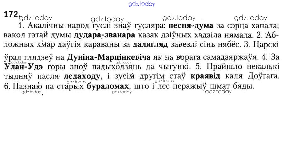 На страницах сайта gdz.today вы найдете учебный и вспомогательный материал, направленный на улучшения знаний школьной программы. ГДЗ - онлайн мир знаний Рашальнік да практыкаванняў 172 Учебнику по Белорусскому языку для 6 класса Красней, Лаурель Национальный институт образования 2015