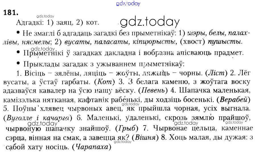 Ответы к Рашальнік да практыкаванняў 181 Учебнику по Белорусскому языку для 6 класса Красней, Лаурель Национальный институт образования 2015