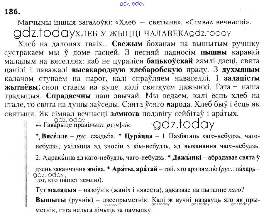 На страницах сайта gdz.today вы найдете учебный и вспомогательный материал, направленный на улучшения знаний школьной программы. ГДЗ - онлайн мир знаний Рашальнік да практыкаванняў 186 Учебнику по Белорусскому языку для 6 класса Красней, Лаурель Национальный институт образования 2015
