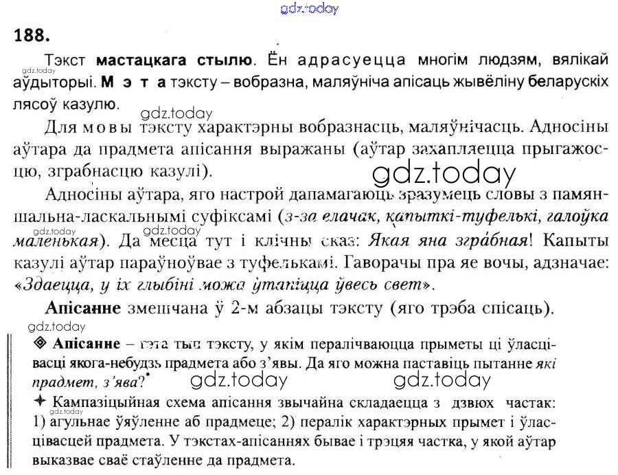 На страницах сайта gdz.today вы найдете учебный и вспомогательный материал, направленный на улучшения знаний школьной программы. ГДЗ - онлайн мир знаний Рашальнік да практыкаванняў 188 Учебнику по Белорусскому языку для 6 класса Красней, Лаурель Национальный институт образования 2015