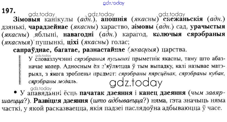 Ответы к Рашальнік да практыкаванняў 197 Учебнику по Белорусскому языку для 6 класса Красней, Лаурель Национальный институт образования 2015