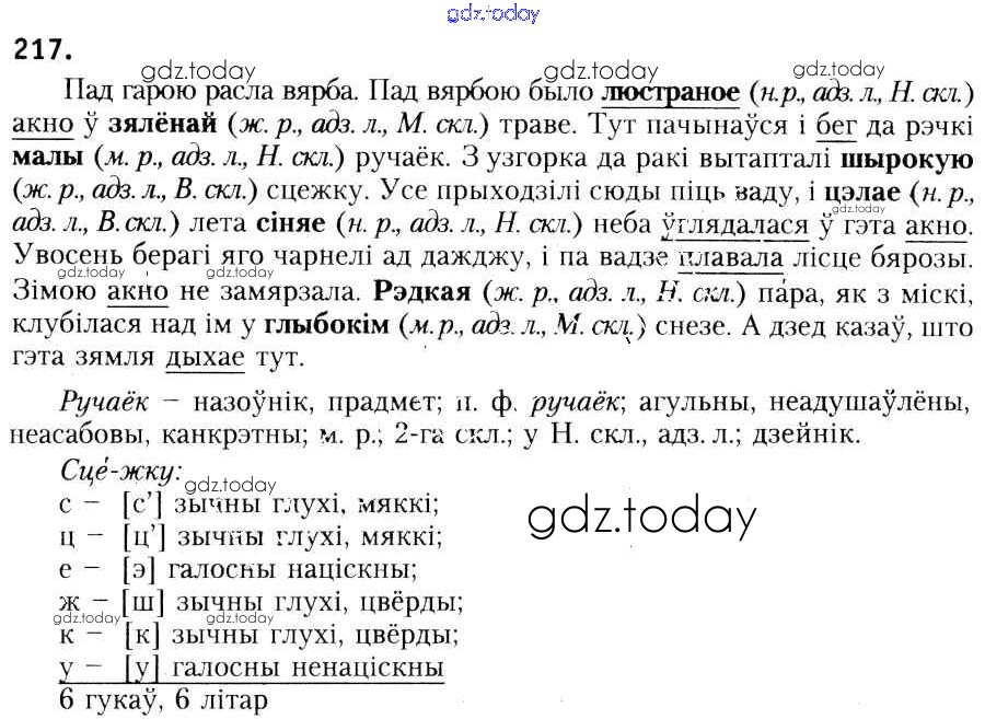 На страницах сайта gdz.today вы найдете учебный и вспомогательный материал, направленный на улучшения знаний школьной программы. ГДЗ - онлайн мир знаний Рашальнік да практыкаванняў 217 Учебнику по Белорусскому языку для 6 класса Красней, Лаурель Национальный институт образования 2015