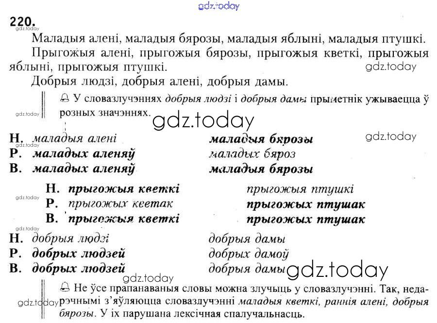 На страницах сайта gdz.today вы найдете учебный и вспомогательный материал, направленный на улучшения знаний школьной программы. ГДЗ - онлайн мир знаний Рашальнік да практыкаванняў 220 Учебнику по Белорусскому языку для 6 класса Красней, Лаурель Национальный институт образования 2015