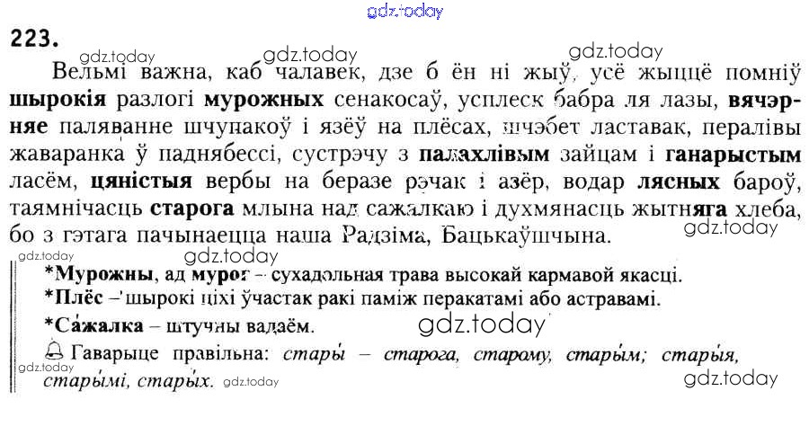 Ответы к Рашальнік да практыкаванняў 223 Учебнику по Белорусскому языку для 6 класса Красней, Лаурель Национальный институт образования 2015