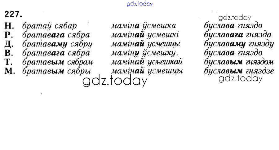 На страницах сайта gdz.today вы найдете учебный и вспомогательный материал, направленный на улучшения знаний школьной программы. ГДЗ - онлайн мир знаний Рашальнік да практыкаванняў 227 Учебнику по Белорусскому языку для 6 класса Красней, Лаурель Национальный институт образования 2015