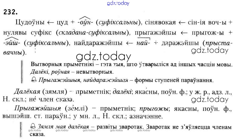 Ответы к Рашальнік да практыкаванняў 232 Учебнику по Белорусскому языку для 6 класса Красней, Лаурель Национальный институт образования 2015
