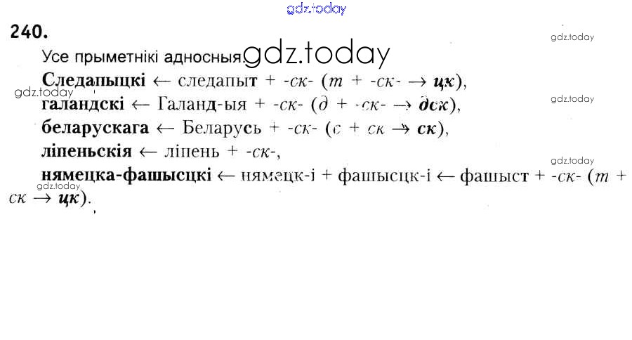 Ответы к Рашальнік да практыкаванняў 240 Учебнику по Белорусскому языку для 6 класса Красней, Лаурель Национальный институт образования 2015