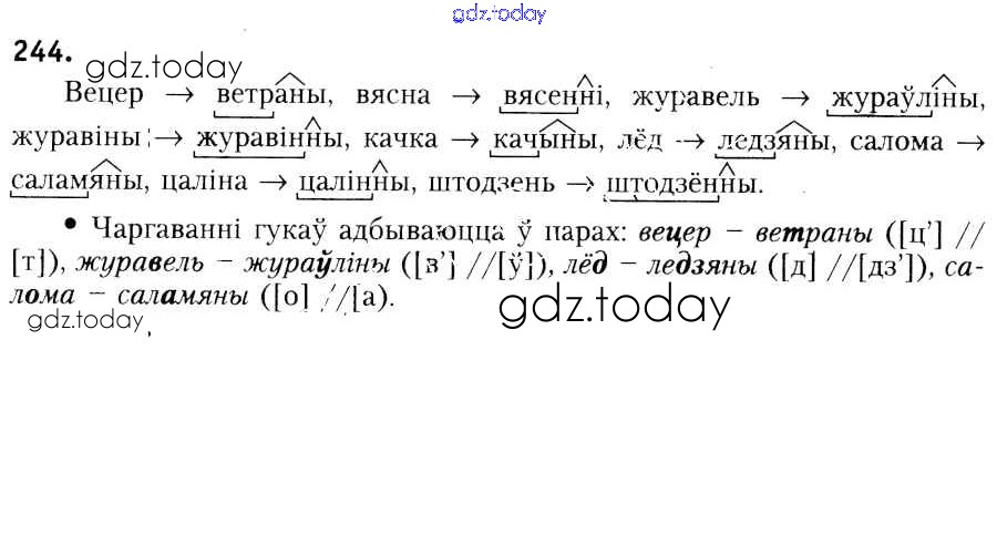 На страницах сайта gdz.today вы найдете учебный и вспомогательный материал, направленный на улучшения знаний школьной программы. ГДЗ - онлайн мир знаний Рашальнік да практыкаванняў 244 Учебнику по Белорусскому языку для 6 класса Красней, Лаурель Национальный институт образования 2015