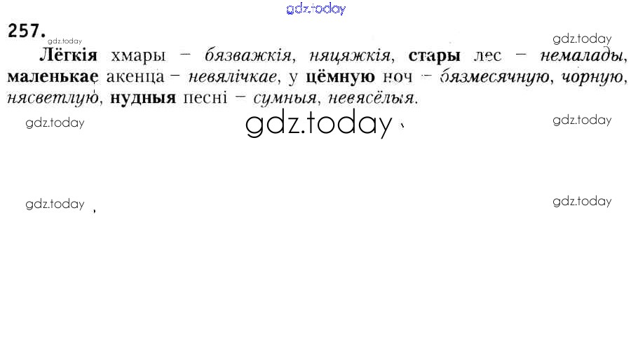 На страницах сайта gdz.today вы найдете учебный и вспомогательный материал, направленный на улучшения знаний школьной программы. ГДЗ - онлайн мир знаний Рашальнік да практыкаванняў 257 Учебнику по Белорусскому языку для 6 класса Красней, Лаурель Национальный институт образования 2015