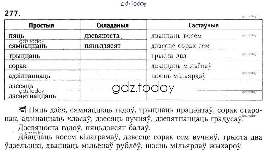 На страницах сайта gdz.today вы найдете учебный и вспомогательный материал, направленный на улучшения знаний школьной программы. ГДЗ - онлайн мир знаний Рашальнік да практыкаванняў 277 Учебнику по Белорусскому языку для 6 класса Красней, Лаурель Национальный институт образования 2015