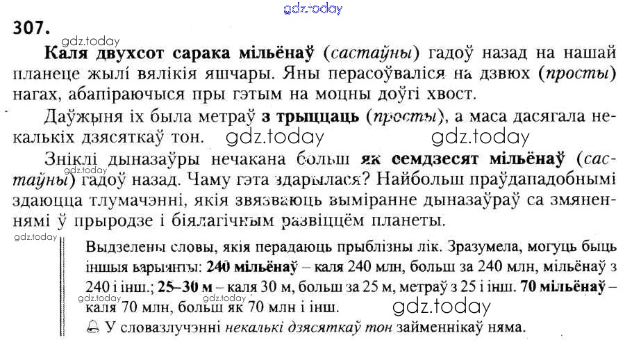 На страницах сайта gdz.today вы найдете учебный и вспомогательный материал, направленный на улучшения знаний школьной программы. ГДЗ - онлайн мир знаний Рашальнік да практыкаванняў 307 Учебнику по Белорусскому языку для 6 класса Красней, Лаурель Национальный институт образования 2015