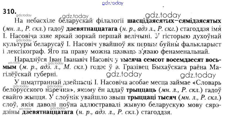 На страницах сайта gdz.today вы найдете учебный и вспомогательный материал, направленный на улучшения знаний школьной программы. ГДЗ - онлайн мир знаний Рашальнік да практыкаванняў 310 Учебнику по Белорусскому языку для 6 класса Красней, Лаурель Национальный институт образования 2015