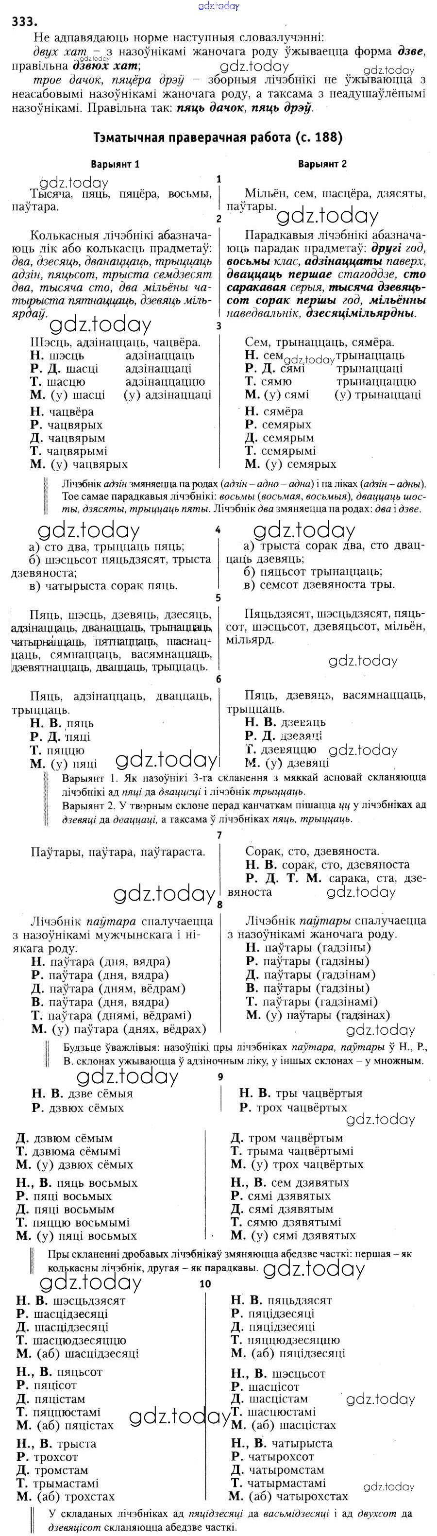 На страницах сайта gdz.today вы найдете учебный и вспомогательный материал, направленный на улучшения знаний школьной программы. ГДЗ - онлайн мир знаний Рашальнік да практыкаванняў 333 Учебнику по Белорусскому языку для 6 класса Красней, Лаурель Национальный институт образования 2015