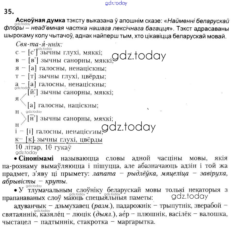 Ответы к Рашальнік да практыкаванняў 35 Учебнику по Белорусскому языку для 6 класса Красней, Лаурель Национальный институт образования 2015