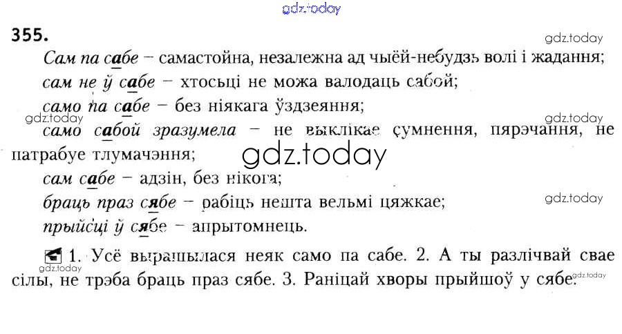 На страницах сайта gdz.today вы найдете учебный и вспомогательный материал, направленный на улучшения знаний школьной программы. ГДЗ - онлайн мир знаний Рашальнік да практыкаванняў 355 Учебнику по Белорусскому языку для 6 класса Красней, Лаурель Национальный институт образования 2015