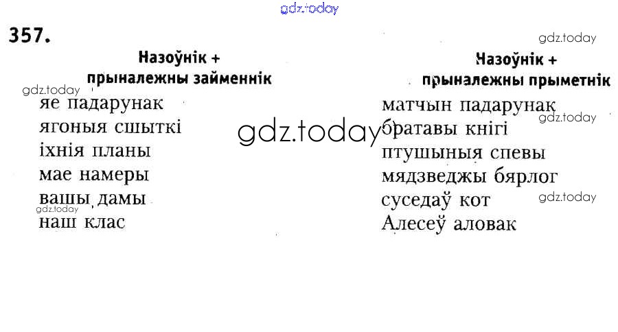 На страницах сайта gdz.today вы найдете учебный и вспомогательный материал, направленный на улучшения знаний школьной программы. ГДЗ - онлайн мир знаний Рашальнік да практыкаванняў 357 Учебнику по Белорусскому языку для 6 класса Красней, Лаурель Национальный институт образования 2015