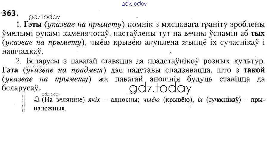 На страницах сайта gdz.today вы найдете учебный и вспомогательный материал, направленный на улучшения знаний школьной программы. ГДЗ - онлайн мир знаний Рашальнік да практыкаванняў 363 Учебнику по Белорусскому языку для 6 класса Красней, Лаурель Национальный институт образования 2015