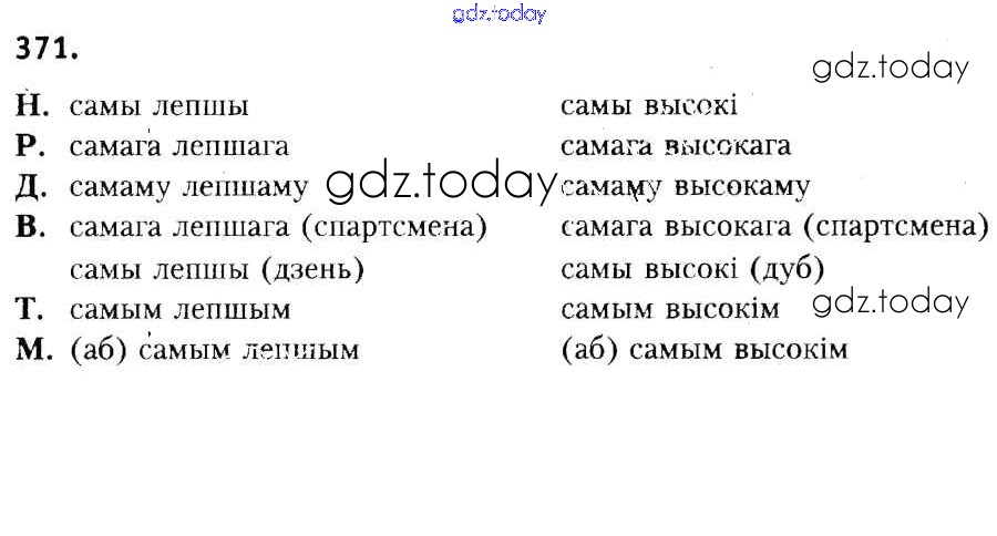 На страницах сайта gdz.today вы найдете учебный и вспомогательный материал, направленный на улучшения знаний школьной программы. ГДЗ - онлайн мир знаний Рашальнік да практыкаванняў 371 Учебнику по Белорусскому языку для 6 класса Красней, Лаурель Национальный институт образования 2015