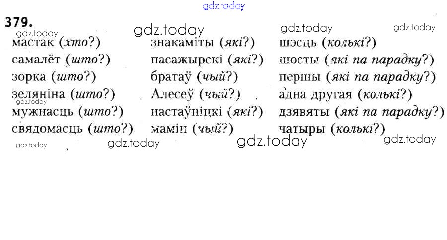 На страницах сайта gdz.today вы найдете учебный и вспомогательный материал, направленный на улучшения знаний школьной программы. ГДЗ - онлайн мир знаний Рашальнік да практыкаванняў 379 Учебнику по Белорусскому языку для 6 класса Красней, Лаурель Национальный институт образования 2015