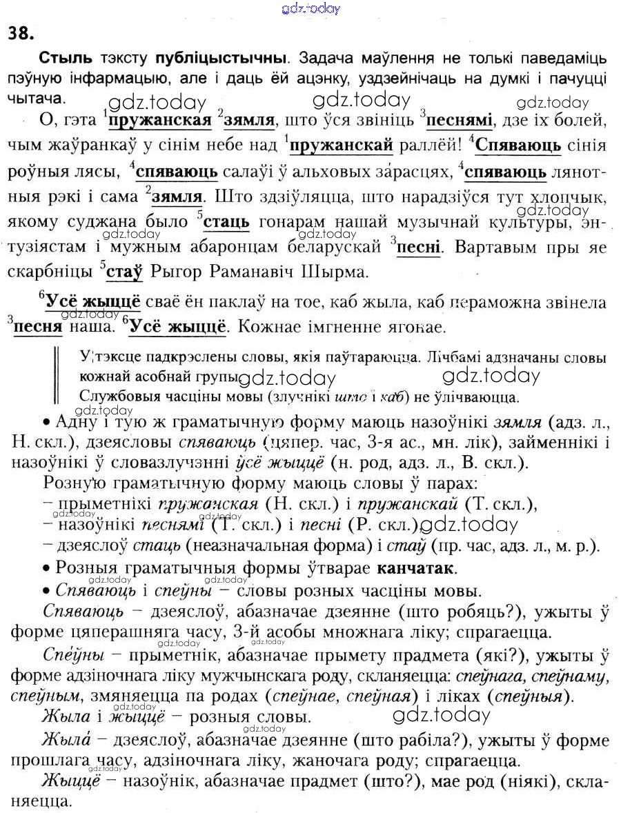 Ответы к Рашальнік да практыкаванняў 38 Учебнику по Белорусскому языку для 6 класса Красней, Лаурель Национальный институт образования 2015