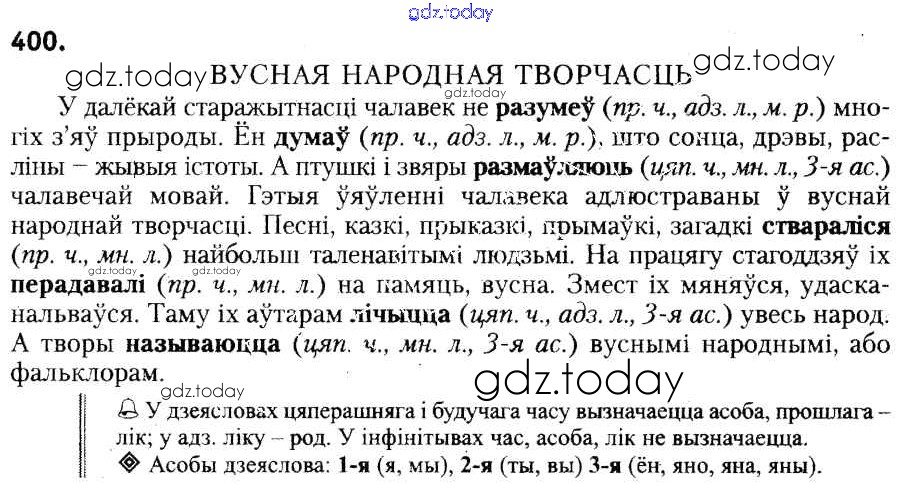 На страницах сайта gdz.today вы найдете учебный и вспомогательный материал, направленный на улучшения знаний школьной программы. ГДЗ - онлайн мир знаний Рашальнік да практыкаванняў 400 Учебнику по Белорусскому языку для 6 класса Красней, Лаурель Национальный институт образования 2015