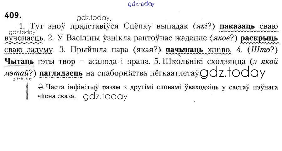 На страницах сайта gdz.today вы найдете учебный и вспомогательный материал, направленный на улучшения знаний школьной программы. ГДЗ - онлайн мир знаний Рашальнік да практыкаванняў 409 Учебнику по Белорусскому языку для 6 класса Красней, Лаурель Национальный институт образования 2015