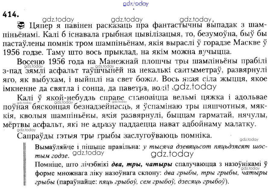На страницах сайта gdz.today вы найдете учебный и вспомогательный материал, направленный на улучшения знаний школьной программы. ГДЗ - онлайн мир знаний Рашальнік да практыкаванняў 414 Учебнику по Белорусскому языку для 6 класса Красней, Лаурель Национальный институт образования 2015