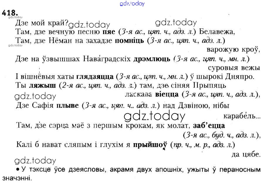 На страницах сайта gdz.today вы найдете учебный и вспомогательный материал, направленный на улучшения знаний школьной программы. ГДЗ - онлайн мир знаний Рашальнік да практыкаванняў 418 Учебнику по Белорусскому языку для 6 класса Красней, Лаурель Национальный институт образования 2015