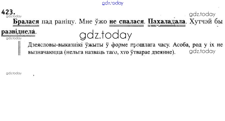 На страницах сайта gdz.today вы найдете учебный и вспомогательный материал, направленный на улучшения знаний школьной программы. ГДЗ - онлайн мир знаний Рашальнік да практыкаванняў 423 Учебнику по Белорусскому языку для 6 класса Красней, Лаурель Национальный институт образования 2015