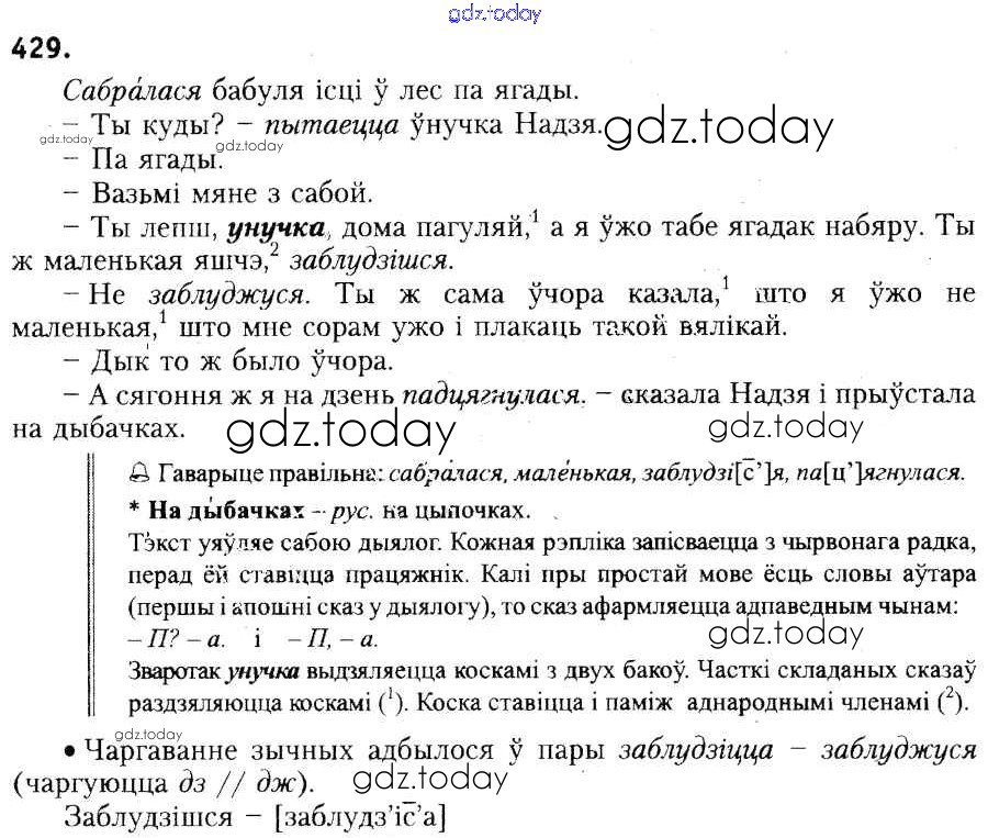 На страницах сайта gdz.today вы найдете учебный и вспомогательный материал, направленный на улучшения знаний школьной программы. ГДЗ - онлайн мир знаний Рашальнік да практыкаванняў 429 Учебнику по Белорусскому языку для 6 класса Красней, Лаурель Национальный институт образования 2015