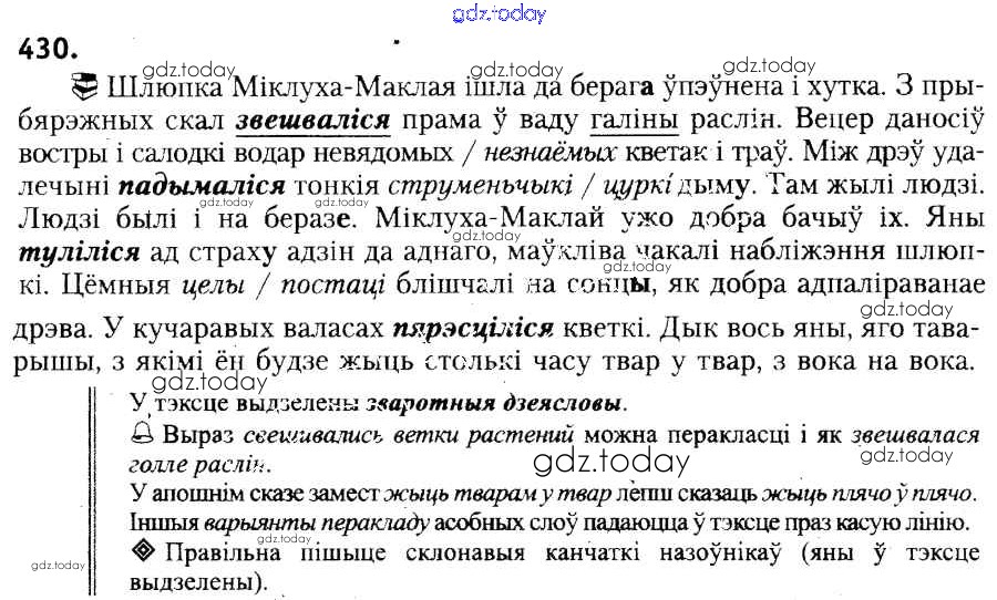 Ответы к Рашальнік да практыкаванняў 430 Учебнику по Белорусскому языку для 6 класса Красней, Лаурель Национальный институт образования 2015