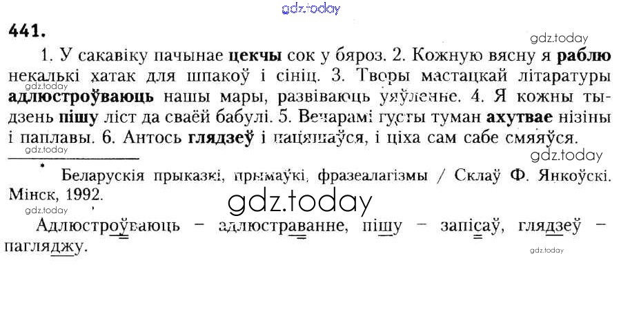 Ответы к Рашальнік да практыкаванняў 441 Учебнику по Белорусскому языку для 6 класса Красней, Лаурель Национальный институт образования 2015