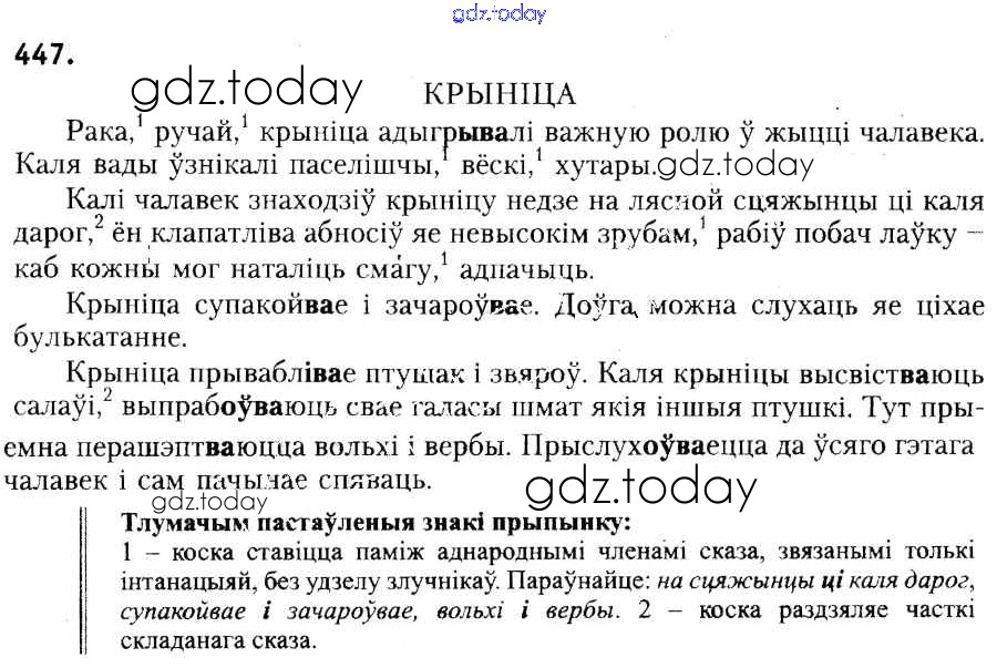 Ответы к Рашальнік да практыкаванняў 447 Учебнику по Белорусскому языку для 6 класса Красней, Лаурель Национальный институт образования 2015
