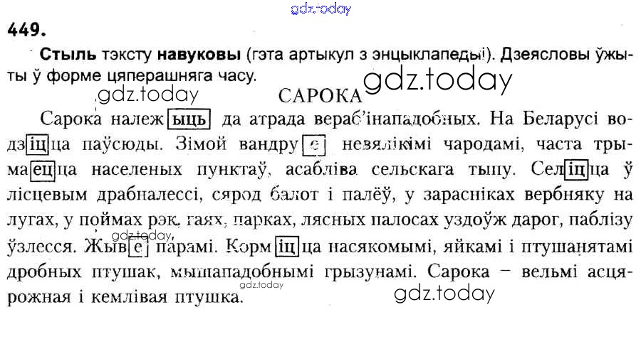 На страницах сайта gdz.today вы найдете учебный и вспомогательный материал, направленный на улучшения знаний школьной программы. ГДЗ - онлайн мир знаний Рашальнік да практыкаванняў 449 Учебнику по Белорусскому языку для 6 класса Красней, Лаурель Национальный институт образования 2015