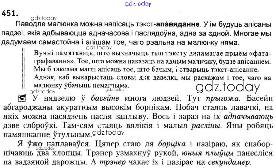 На страницах сайта gdz.today вы найдете учебный и вспомогательный материал, направленный на улучшения знаний школьной программы. ГДЗ - онлайн мир знаний Рашальнік да практыкаванняў 451 Учебнику по Белорусскому языку для 6 класса Красней, Лаурель Национальный институт образования 2015