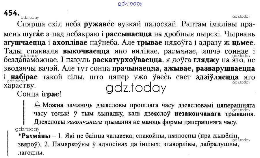 Ответы к Рашальнік да практыкаванняў 454 Учебнику по Белорусскому языку для 6 класса Красней, Лаурель Национальный институт образования 2015