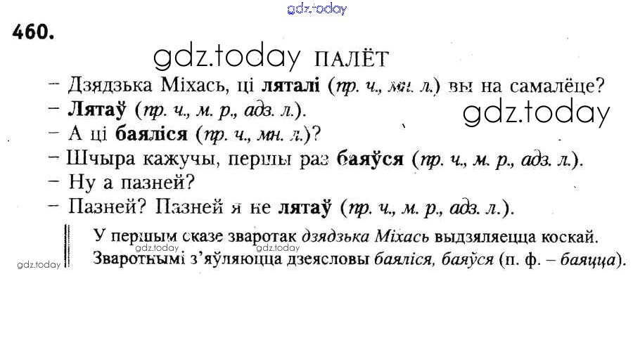 Ответы к Рашальнік да практыкаванняў 460 Учебнику по Белорусскому языку для 6 класса Красней, Лаурель Национальный институт образования 2015