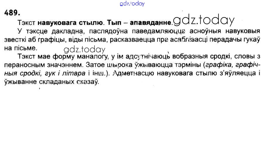 На страницах сайта gdz.today вы найдете учебный и вспомогательный материал, направленный на улучшения знаний школьной программы. ГДЗ - онлайн мир знаний Рашальнік да практыкаванняў 489 Учебнику по Белорусскому языку для 6 класса Красней, Лаурель Национальный институт образования 2015