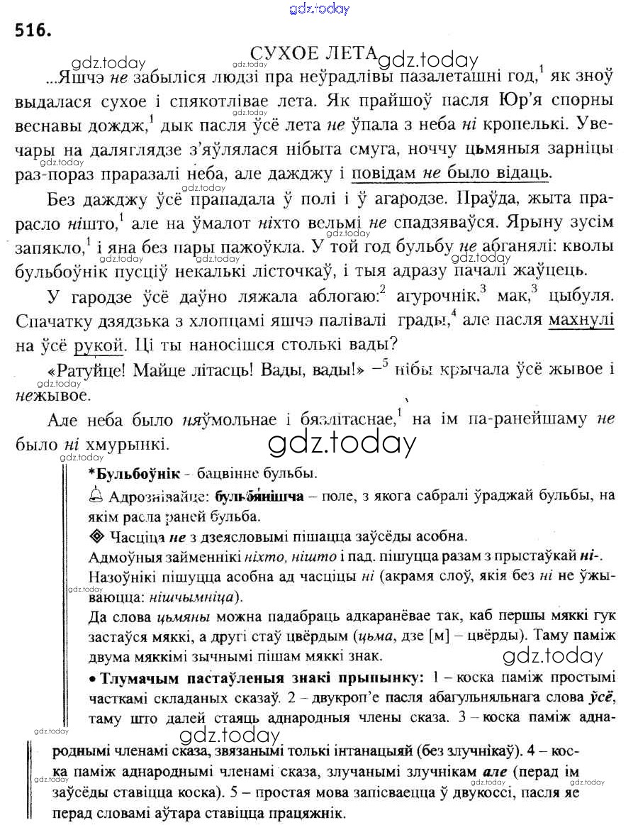 Ответы к Рашальнік да практыкаванняў 516 Учебнику по Белорусскому языку для 6 класса Красней, Лаурель Национальный институт образования 2015