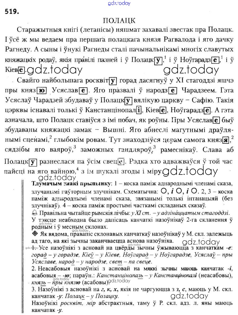 Ответы к Рашальнік да практыкаванняў 519 Учебнику по Белорусскому языку для 6 класса Красней, Лаурель Национальный институт образования 2015