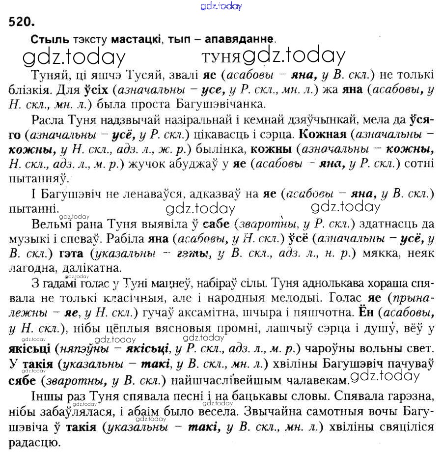 Ответы к Рашальнік да практыкаванняў 520 Учебнику по Белорусскому языку для 6 класса Красней, Лаурель Национальный институт образования 2015