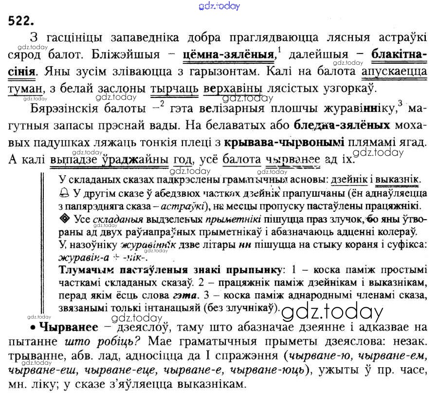Ответы к Рашальнік да практыкаванняў 522 Учебнику по Белорусскому языку для 6 класса Красней, Лаурель Национальный институт образования 2015