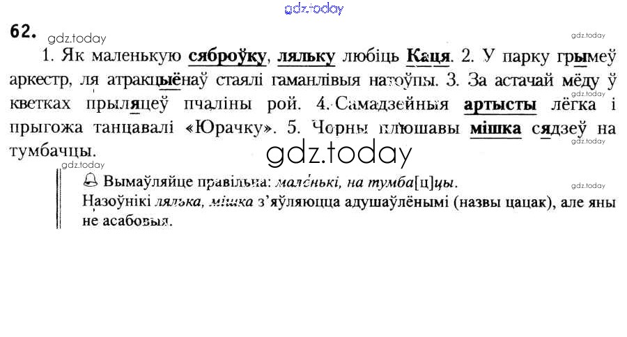 На страницах сайта gdz.today вы найдете учебный и вспомогательный материал, направленный на улучшения знаний школьной программы. ГДЗ - онлайн мир знаний Рашальнік да практыкаванняў 62 Учебнику по Белорусскому языку для 6 класса Красней, Лаурель Национальный институт образования 2015