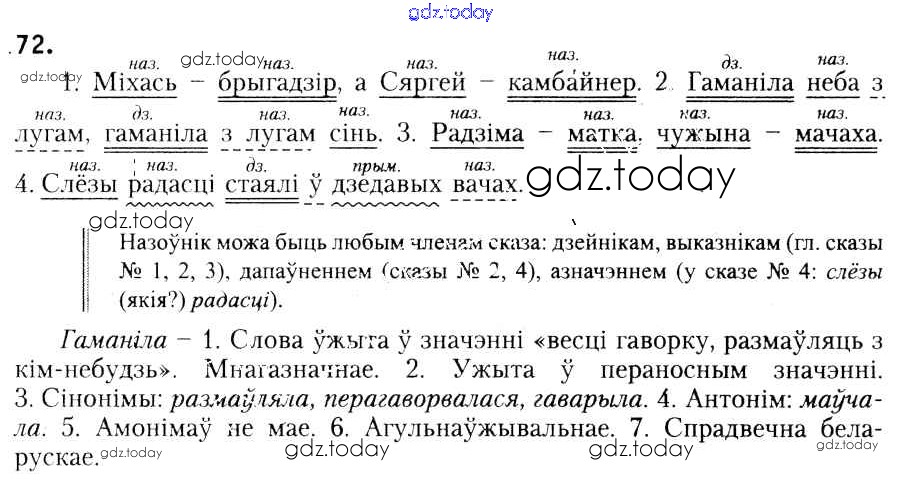 Ответы к Рашальнік да практыкаванняў 72 Учебнику по Белорусскому языку для 6 класса Красней, Лаурель Национальный институт образования 2015