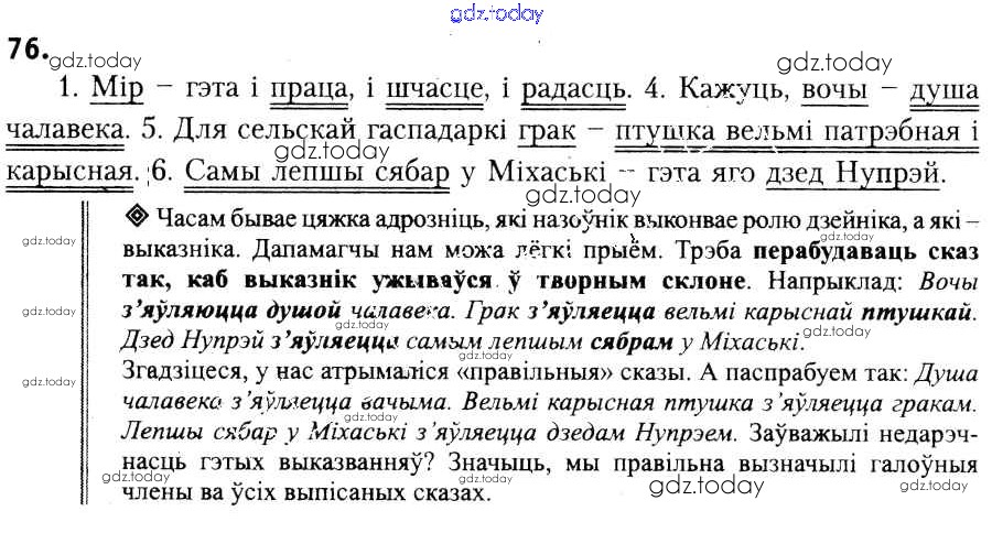 На страницах сайта gdz.today вы найдете учебный и вспомогательный материал, направленный на улучшения знаний школьной программы. ГДЗ - онлайн мир знаний Рашальнік да практыкаванняў 76 Учебнику по Белорусскому языку для 6 класса Красней, Лаурель Национальный институт образования 2015