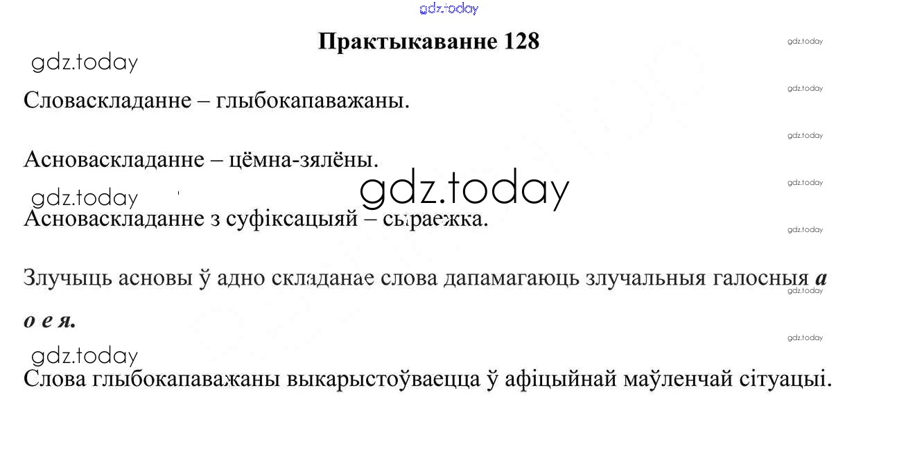 На страницах сайта gdz.today вы найдете учебный и вспомогательный материал, направленный на улучшения знаний школьной программы. ГДЗ - онлайн мир знаний Рашальнік да практыкаванняў 128 Учебнику по Белорусскому языку для 6 класса Валочка, Зелянко Национальный институт образования 2020