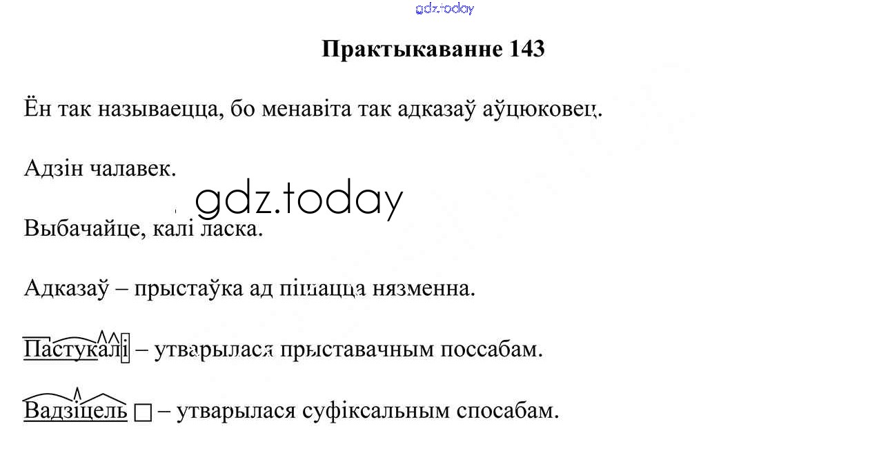 На страницах сайта gdz.today вы найдете учебный и вспомогательный материал, направленный на улучшения знаний школьной программы. ГДЗ - онлайн мир знаний Рашальнік да практыкаванняў 143 Учебнику по Белорусскому языку для 6 класса Валочка, Зелянко Национальный институт образования 2020
