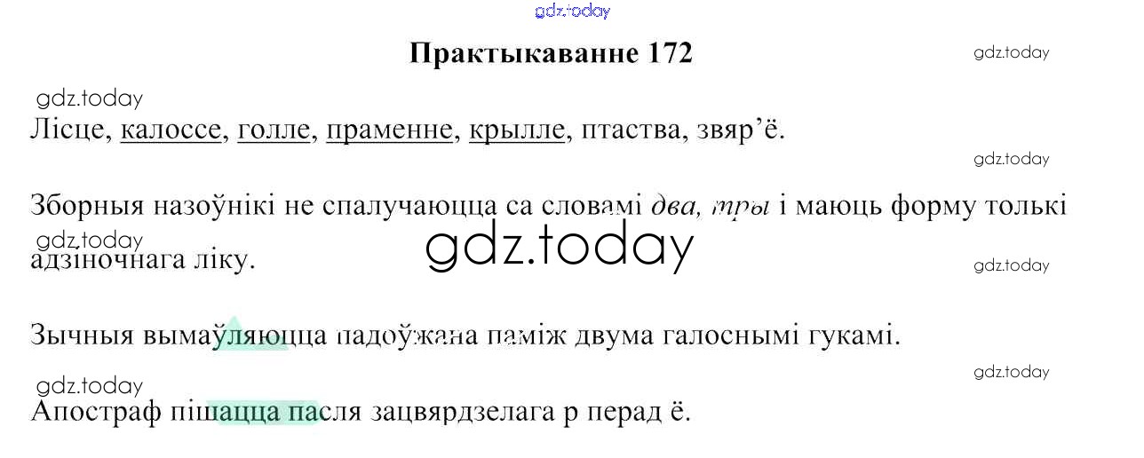 На страницах сайта gdz.today вы найдете учебный и вспомогательный материал, направленный на улучшения знаний школьной программы. ГДЗ - онлайн мир знаний Рашальнік да практыкаванняў 172 Учебнику по Белорусскому языку для 6 класса Валочка, Зелянко Национальный институт образования 2020