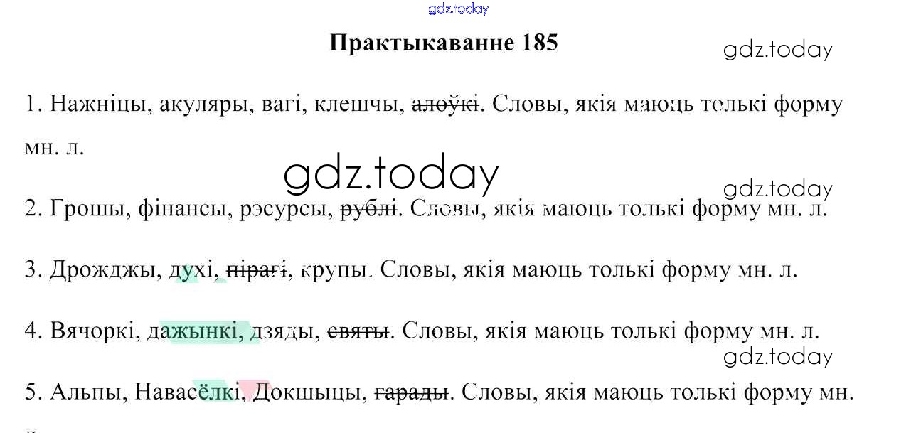 На страницах сайта gdz.today вы найдете учебный и вспомогательный материал, направленный на улучшения знаний школьной программы. ГДЗ - онлайн мир знаний Рашальнік да практыкаванняў 185 Учебнику по Белорусскому языку для 6 класса Валочка, Зелянко Национальный институт образования 2020