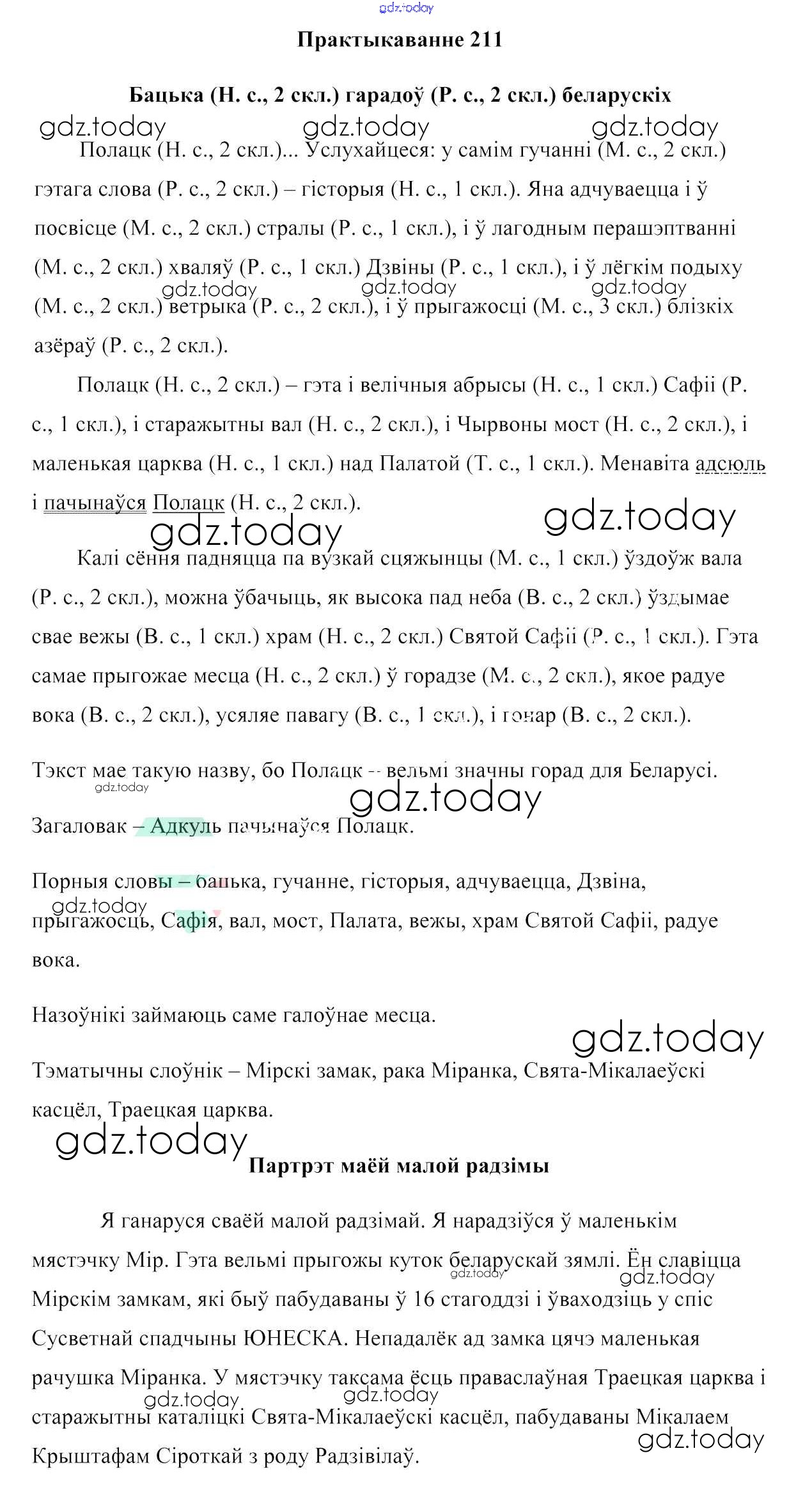 На страницах сайта gdz.today вы найдете учебный и вспомогательный материал, направленный на улучшения знаний школьной программы. ГДЗ - онлайн мир знаний Рашальнік да практыкаванняў 211 Учебнику по Белорусскому языку для 6 класса Валочка, Зелянко Национальный институт образования 2020